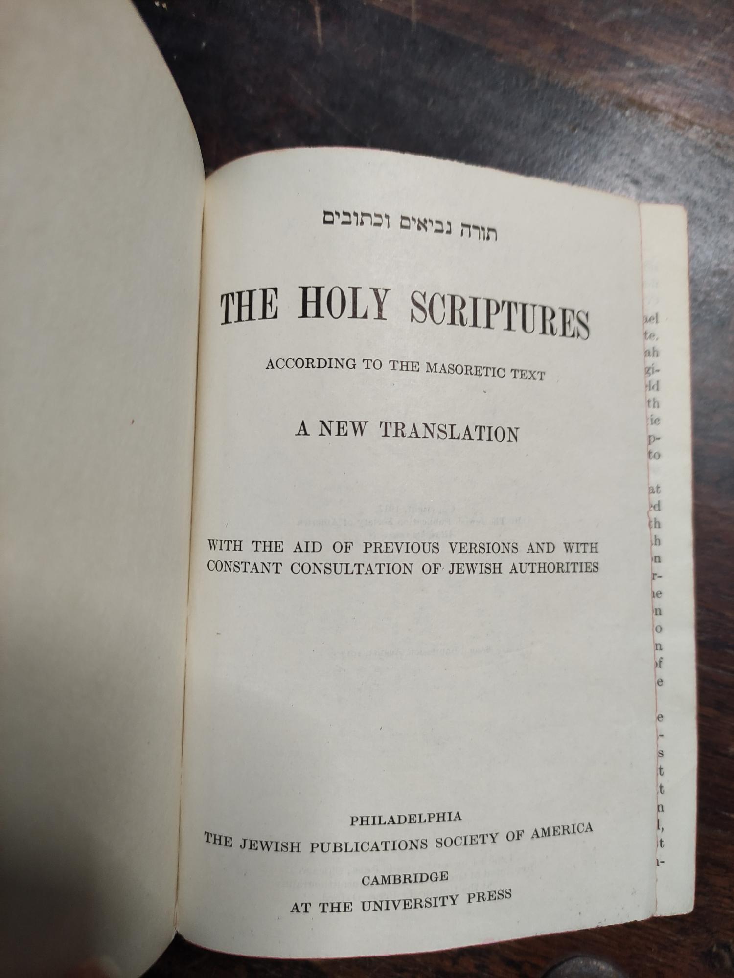 THE HOLY SCRIPTURES. A NEW TRANSLATION [UNKNOWN BINDING]